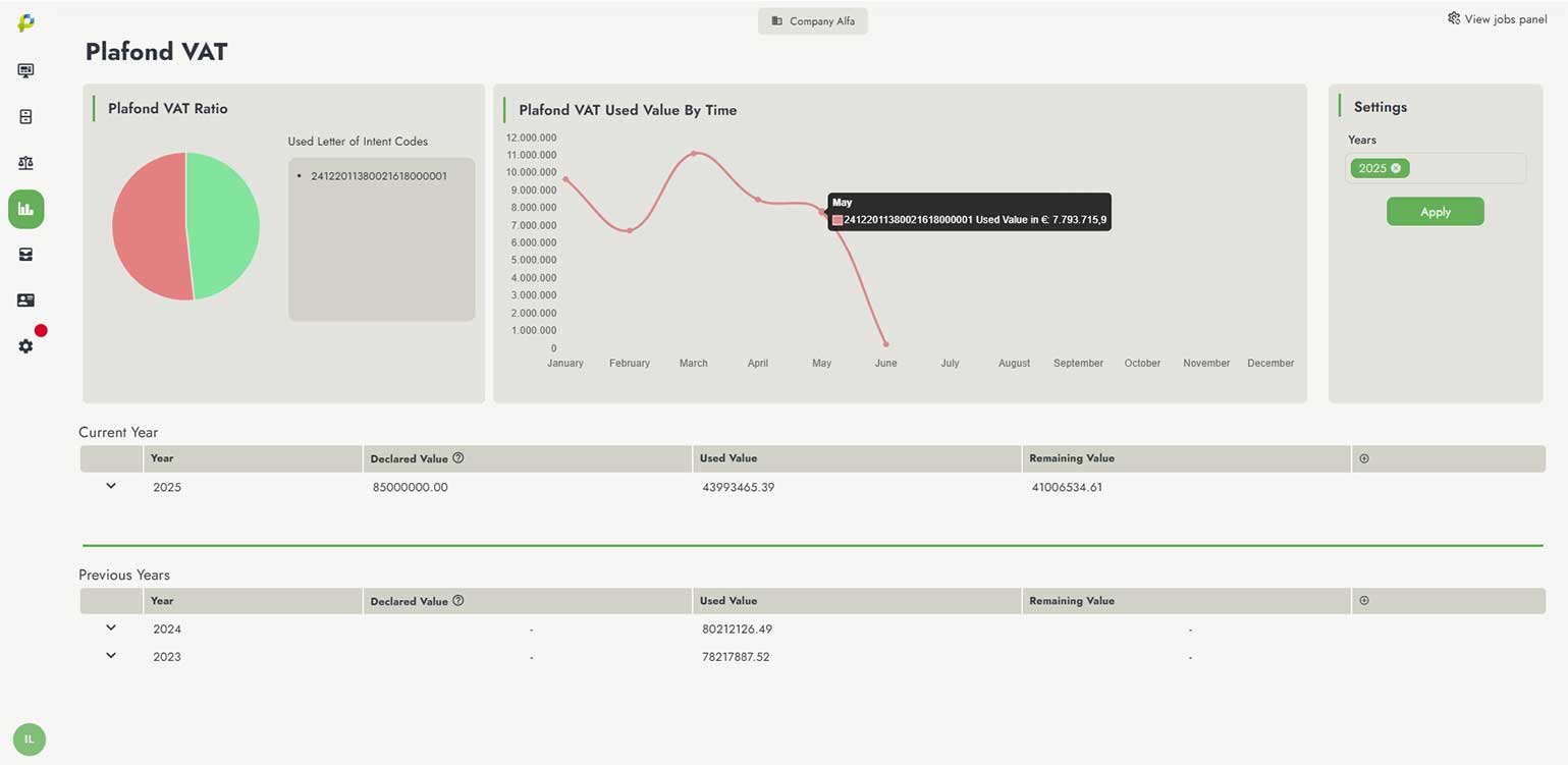 Efficienza operativa e conformità garantita: controllo centralizzato delle dichiarazioni, gestione di dazi e imposte (IVA, accise, plafond IVA) e preparazione semplificata a verifiche da parte delle autorità.