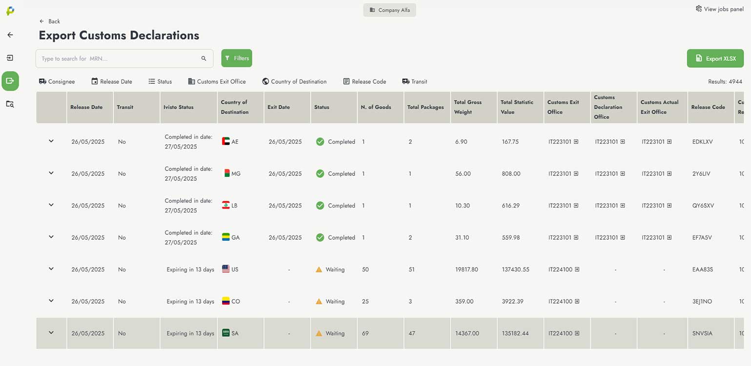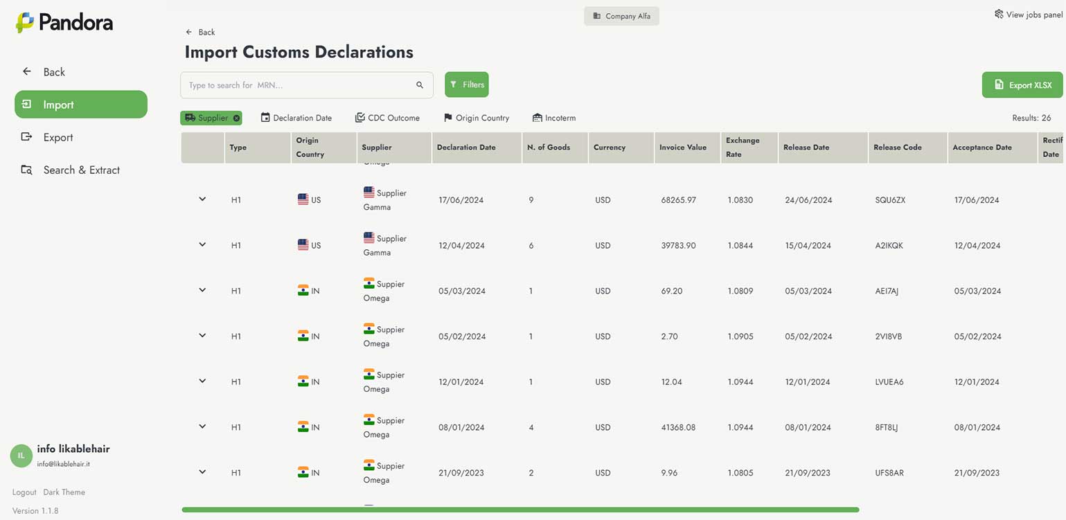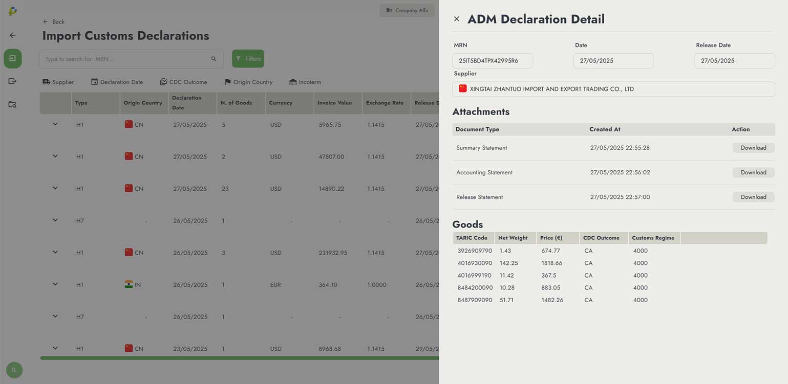 Database aziendale unificato: tutte le informazioni su importazioni, esportazioni e partner commerciali raccolte in un’unica piattaforma, per decisioni rapide e consapevoli.